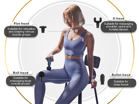 【 Professional massage stroke】Powerful motor provides 7mm strong stroke same as big massage gun. Four professional massage heads can be changed upon your own need.